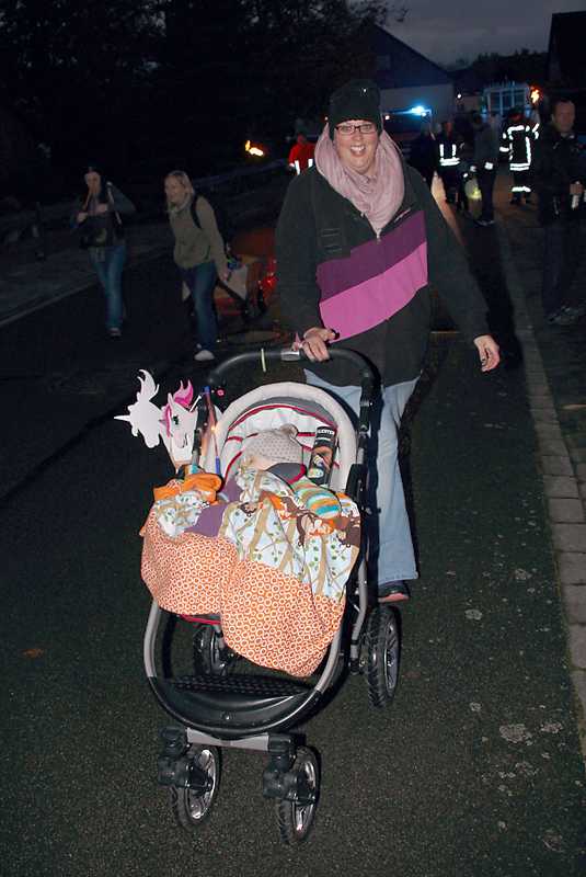 Mit den Liedern Tippelbrüder, Can Can, Grüße aus Münster und Fliegermarsch zog sich der Lampionumzug durch die Straßen Am Beek, Ostlandstraße, Harzblick, Obere Landwehr, Lahberg, Steinweg, Krumme Straße, zum Westendorf. Hier gab es für die Kinder Süßigkeiten, Pommes und Bratwurst sowie verschiedene Getränke.