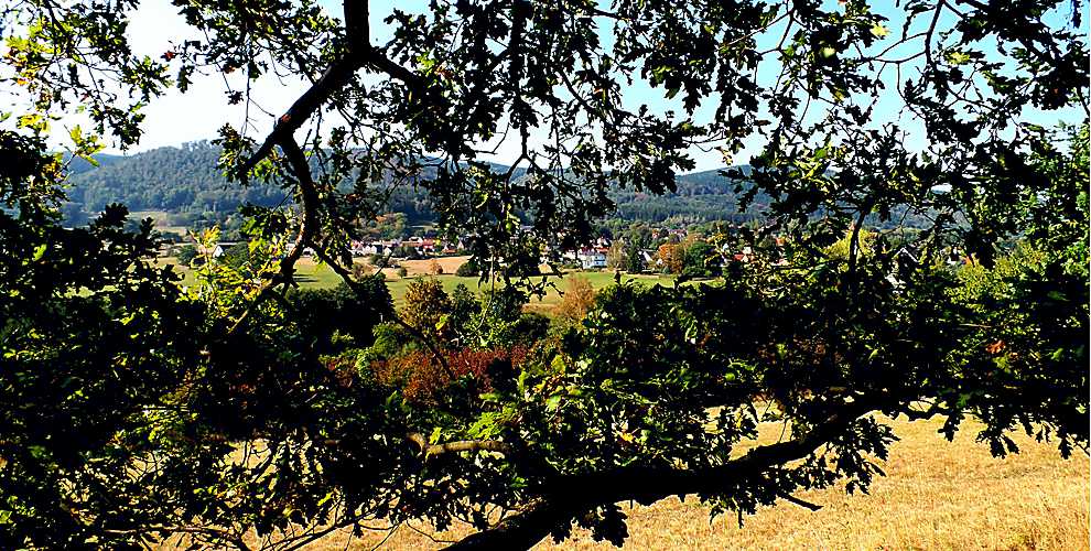 Die Laubfärbung wird durch die gegenwärtige Trockenheit beschleunigt. Das Bild zeigt einen Blick vom Bad Harzburger Langenberg zum Ortsteil Göttingerode.
