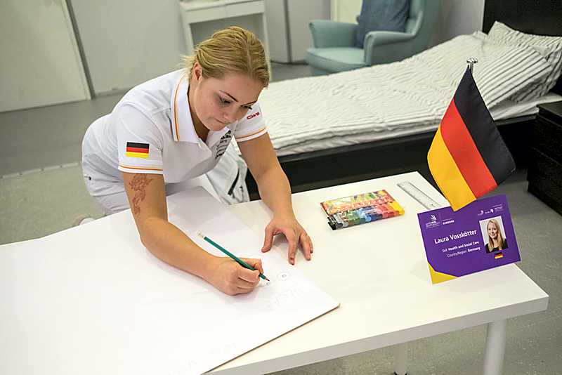 Insgesamt nahmen bei der WM 1300 Teilnehmer aus 59 Ländern und Regionen teil, die deutsche Nationalmannschaft war mit 42 Frauen und Männern aus Industrie, Handwerk und Dienstleistungsbereich, angetreten, in insgesamt 38 von den 51 Berufsdisziplinen. Pro Kategorie der Berufe-WM gab es jeweils einen Vertreter aus jedem Land. Laura Vosskötter nahm in dem Bereich „Health & social care“ teil, in ihrem „skill“ waren sie in Abu Dhabi 14 insgesamt Azubis im Alter unter 22 Jahren aus aller Welt, die sich zuvor in ihren Ländern für die WM qualifiziert hatten.