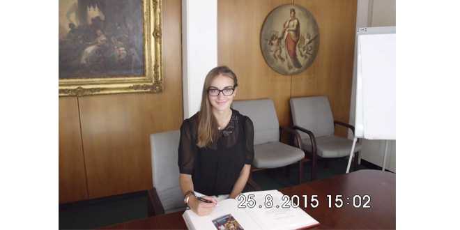 Neben interessanten Gesprächen ehrte Bürgermeister Abrahms Lea Ahrens für ihre sportlichen Leistungen und übergab ihr ein Präsent. Der Bürgermeister ist erfreut, dass sie nun sogar international auf sich aufmerksam macht und die Farben der Stadt Bad Harzburg bei verschiedensten Wettkämpfen vertritt. Honoriert wurde die Leistung zudem mit der Verewigung Lea Ahrens ins Goldene Buch der Stadt Bad Harzburg.