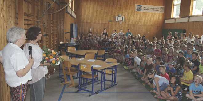 In der Vergangenheit hatte sie sogar schon Kinder in der Klasse, die sie damals als Schüler in der Klasse hatte. Die Arbeit mit den Kindern und der Kontakt zu den Eltern, zu denen sie immer ein gutes Verhältnis hatte, machte ihr immer Spaß. Ihre traurigsten Augenblicke an der Schulen waren, als ein Kind sich beim Sport das Schlüsselbein gebrochen hatte, aber auch als ein Schüler einmal ausgerutscht ist und dabei die neuen Schneidezähne verloren hat. Dankesworte gab es von der Rektorin Gabriele Henners während der Verabschiedung der 4. Klassen, an Doris Holste. Alle Kinder der Schule, der Kollegenkreis und Eltern waren in der Sporthalle vertreten. Mit ihrer letzten Klasse, der 2b, unternahmen Sie bereits am Montag einen Überraschungsausflug an den Abenteuerspielplatz des Vienenburger Sees. Im Kollegenkreis wurde bereits der Abschied in einem Lengder Café gefeiert. Dort erhielt die zukünftige Pensionärin die „Ruhestandsurkunde“ von der Rektorin.