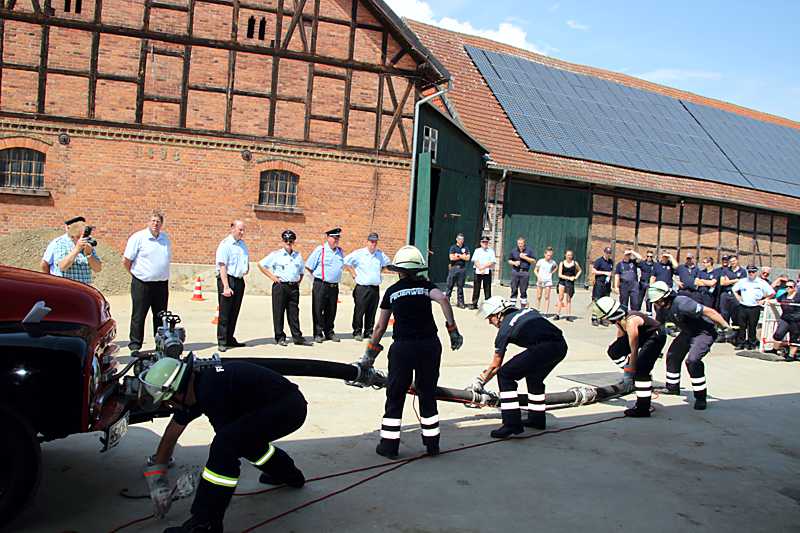 Zum Leistungswettbewerb der sieben Ortsfeuerwehren der Gemeinde Schladen-Werla wurde auf den Hof von Karola und Robert Vorlop eingeladen