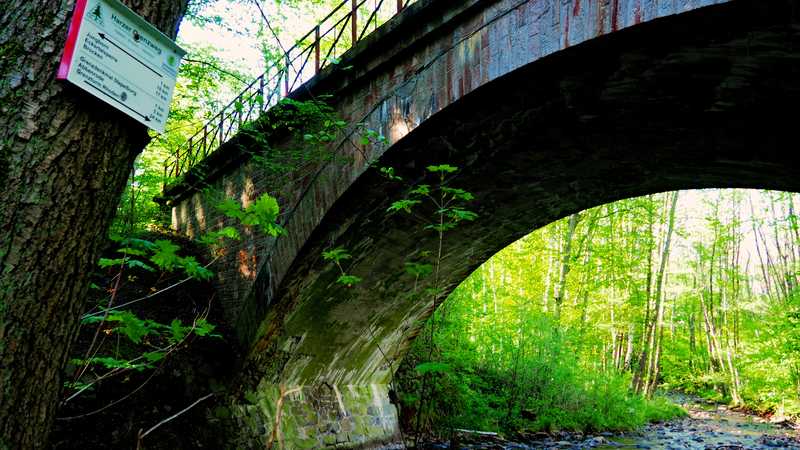 Von der am 1. Oktober 1894 feierlich eröffneten eingleisigen Bahnstrecke von Bad Harzburg nach Wernigerode, befindet sich zwischen Eckertal und Stapelburg noch ein kurzes Gleisstück auf der Brücke über das Flüsschen Ecker.