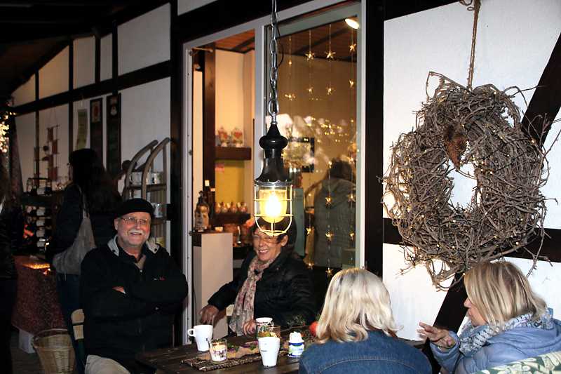 Auf der Galerieterrasse und im Esszimmer der Familie Broistedt, dass zum Hof Bistro umgewandelt wurde, fand man lauschige Plätze vor. Hausgemachte Torten und heiße Suppe verwöhnten den Gaumen. Kaffee, Glühwein oder Rotwein konnte man am Feuertopf genießen oder mit einer Decke über den Knien auf der Terrasse mit netten Gästen plauschen und verweilen.