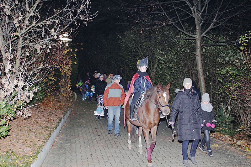 Der anschließende Martinsumzug wurde angeführt durch die neunjährige Emely als „St. Martin“ auf dem achtjährigen Pony „Carina“. Es folgten ca. 100 Kinder mit ihren Familienangehörigen. Musikalisch begleitet wurde der Umzug durch den Spielmannzug Schladen unter der Leitung von Klaus-Dieter Fricke.