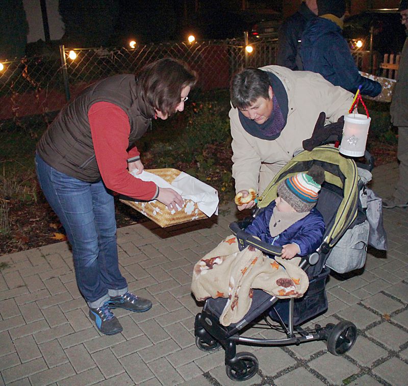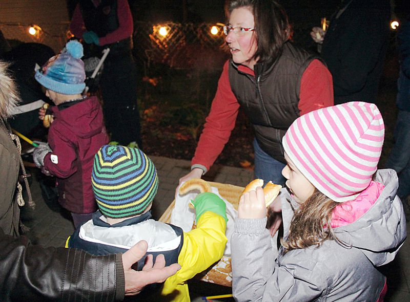 Am evangelischen Gemeindehaus wurden die Kinder schon erwartet, denn jedes bekam eine Martinsbrezel. Außerdem gab es Schmalzbrote, Kürbissuppe, Pommes und verschiedene Getränke. Es musste das Gewicht einer Martinsgans erraten werden. Strahlender Sieger war Karsten Plumenbohm aus Schladen, er lag mit dem geschätzten Gewicht von 4250 g nur knapp unter dem wahren Gewicht der Gans von 4330 g.