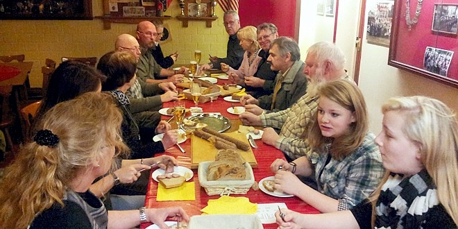 Am 8. Februar 2015 war es wieder soweit. In einem kleinen Kreis, bestehend aus 15 Teilnehmern startete Wirt Gerd Douglas wie bereits im vergangenen Jahr die Tradition des gemeinsamen Mettwurstessens. Wie auf dem Foto bereits zu erkennen ist, mundete es der Runde. Zur bestellten Mettwurst reichte Gerd zusätzlich Schmalzstullen und Gurken. Schon allein die Steigerung auf über 50 Teilnehmer in diesem Jahr lässt für die Zukunft hoffen. Somit war das Essen im Schützenhaus in Wiedelah ein voller Erfolg und man sah jedem die Begeisterung an.