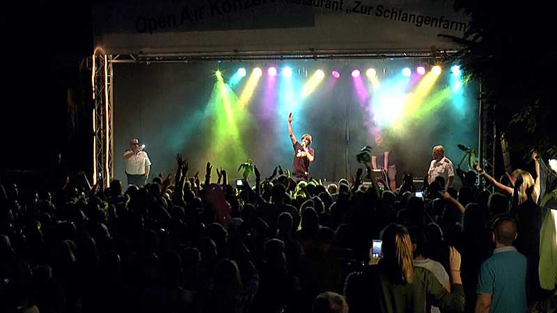 Dieser legte auch sofort los und es waren keine 5 Minuten, da sang nicht nur er seine Hits, sondern alle. Zwischendurch erzählte Mickie Krause einige Anekdoten und überbrachte unter anderen auch Partygrüße vom „König von Mallorca“, Jürgen Drews, der vor zwei Jahren ebenfalls auf der Schlangenfarm für Stimmung sorgte.
