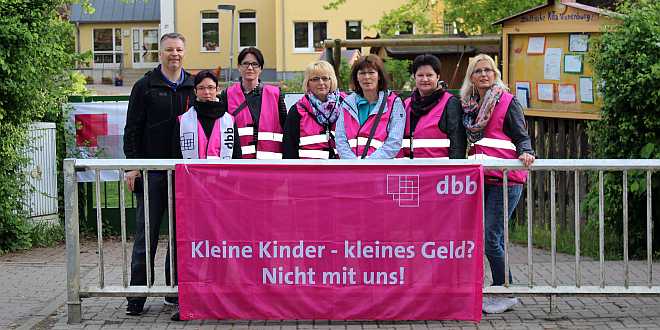 Mitarbeiterinnen beim Streik vor der Kindertagesstätte in Vienenburg