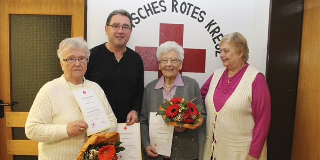 155 Jahre Rot Kreuz Zugehörigkeit (vl.) Magdalene Köppelmann (40 Jahre), Klaus Kubitschke (40 Jahre), Elfriede Trost (75 Jahre)