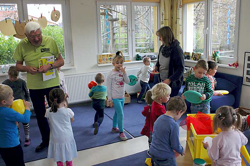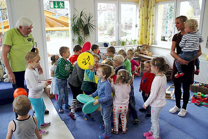 Peter Scheffel, 1. Vorsitzender von der Verkehrswacht Goslar Stadt und Land e.V., hatte der Leiterin der Kindertagesstätte Sabrina Röttger und der Stellvertreterin Stefanie Heger eine Move-it Box überreicht. Viele Utensilien und Anleitungen zur Mobilitätserziehung enthält die Box, die die Kinder unter anderem auf die Herausforderungen der Teilnahme am öffentlichen Straßenverkehr weiter sensibilisieren soll. Die Box wurde gleich von den Kindern zusammen mit Peter Scheffel ausprobiert und entdeckt.