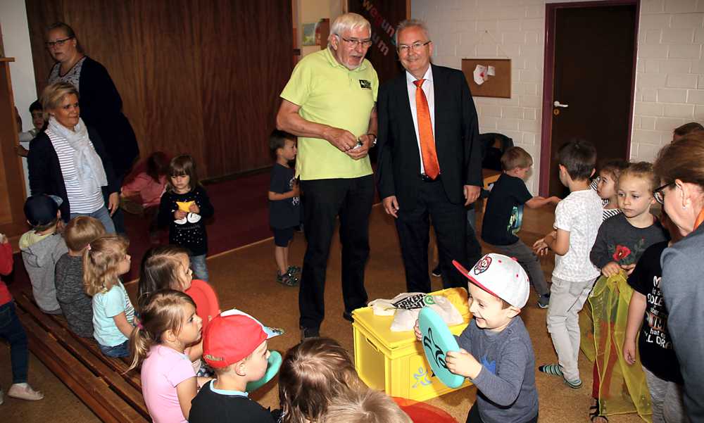 In der Kiste befinden sich Frisby-Scheiben, Bälle, Tücher, Würfel und Spiele. „Die Volksbank Nordharz eG hat in der Vergangenheit immer wieder dazu beigetragen, dass Projekte in Kindergärten und Schulen realisiert werden können“, bemerkt Hans Dieter Reichelt, Vorstand der Volksbank Nordharz eG. Nicht nur in Goslar fördert die Volksbank die Kinder- und Jugendarbeit, sie ist im gesamten Einzugsgebiet mit ihrem Engagement aktiv. Die Spende wurde über die VR -Gewinnspargemeinschaft der Volks- und Raiffeisenbanken angeschafft. Etwa 20.000 Gewinnlose zu fünf Euro pro Los sind bei der Volksbank an Kunden verkauft worden. Von jedem Los ging ein Euro an soziale Zwecke.