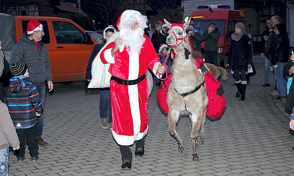 Es dauerte auch nicht lange, bis sich der Weihnachtsmann „Jürgen“ mit seinen Begleitern den Weg bahnte. Er kam mit seinem 12-jährigen Lama „Jake“ und den drei Alpakas Jonny und Luke, beide 9 Jahre und Hanniball, dem zweijährigen Nachwuchs.