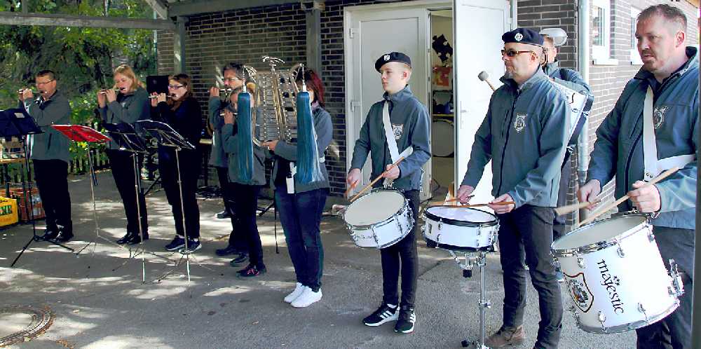 Der Spielmannszug Wiedelah hatte Vereine und Organisationen sowie Bürgerinnen und Bürger zum musikalischen Frühschoppen und geselligen Beisammensein eingeladen. Wetterbedingt musste die Veranstaltung vom Marktplatz in der Dorfmitte auf den Schulhof der Grundschule verlegt werden. Der Spielmannszug sorgte für Sitzgelegenheiten, Getränke und für das leibliche Wohl mit Gegrilltem. Jeglicher Verkauf geschah zum Selbstkostenpreis, wobei der Erlös ausschließlich der Jugendkasse, für neue Instrumente, zugute kommt.
