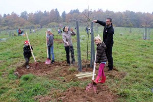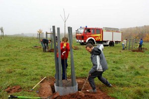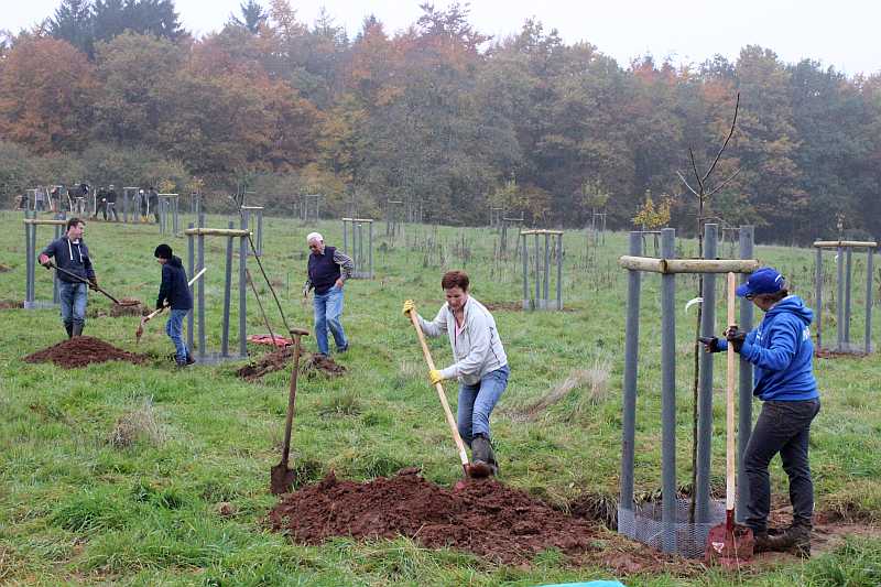 Großeinsatz am 7.11.2015 auf dem Gelände der ehemaligen Grube Fortuna: 50 hochstämmige Obstbäume wurden auf der Streuobstwiese gepflanzt.