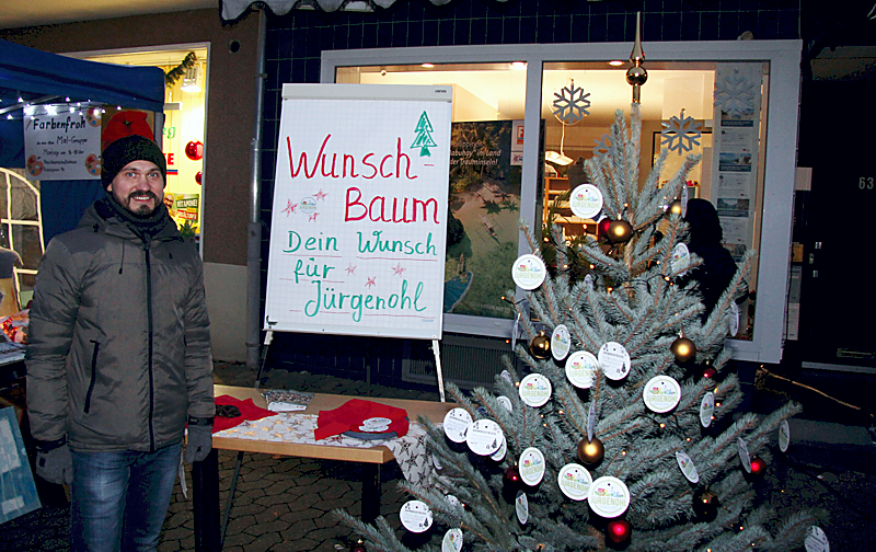 Der Nikolaus saß auf einem Anhänger, gezogen von einem historischen Trecker Baujahr 1949, den Bruno Axmann fuhr. An verschiedenen Verkaufsständen gab es etwas für das leibliche Wohl. An einem privaten Stand wurden Waffeln gebacken, Zuckerwatte, Kaffee und Popcorn angeboten. Das Team um Galina Gerhart, Integrationsbeauftragte der Stadt Goslar, servierte Spezialitäten aus Ländern wie Syrien, Russland, Usbekistan, Kasachstan, Vietnam und der Ukraine. Die neue Malgruppe Farbenfroh von der Kulturwerkstatt Jürgenohl präsentierte Bilder, bemalte Steine und Grußkarten. Und die Nadelhexen verkauften Gestricktes und Gehäkeltes für einen guten Zweck. Gebasteltes und Selbstgebackenes gab es beim Paritätischen Wohlfahrtsverband. Anziehungspunkt war der Wunschbaum für Dein Jürgenohl, organisiert von Pavel Simchanka. Hier konnten die Besucher ihre Wünsche aufschreiben, welche dann zusammengetragen und ausgewertet werden. Die Wünsche werden dann in das Programm soziale Stadt aufgenommen und bei der Planung berücksichtigt.