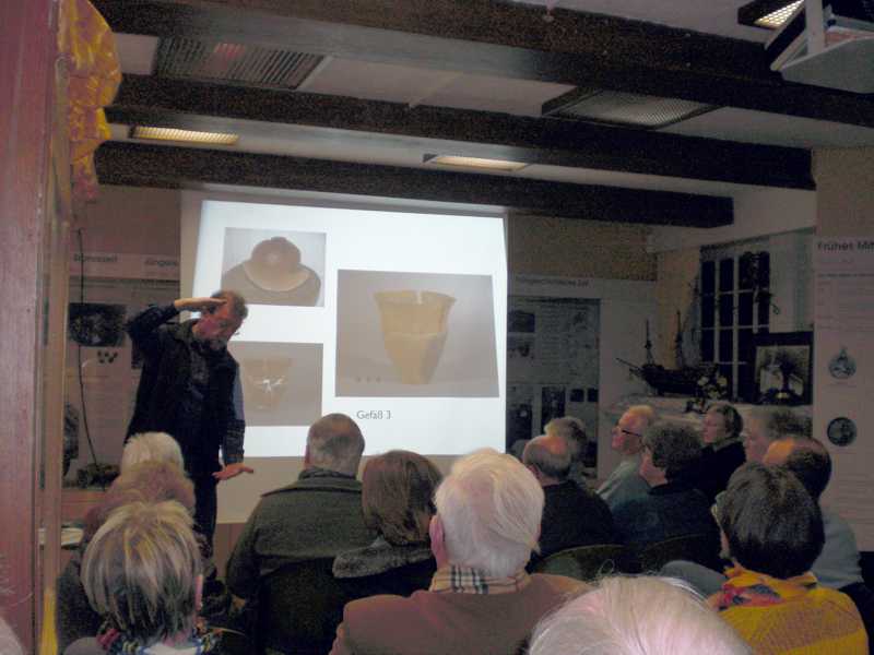 Beim 4. Winterabend im „Heimathaus Alte Mühle“ in Schladen berichtete der Bezirksarchäologe Dr. Michael Geschwinde über das 2010 gefundene Grab auf der Werla bei Schladen. Dazu war mit über fünfzig Besuchern das Heimathaus fast überfüllt.