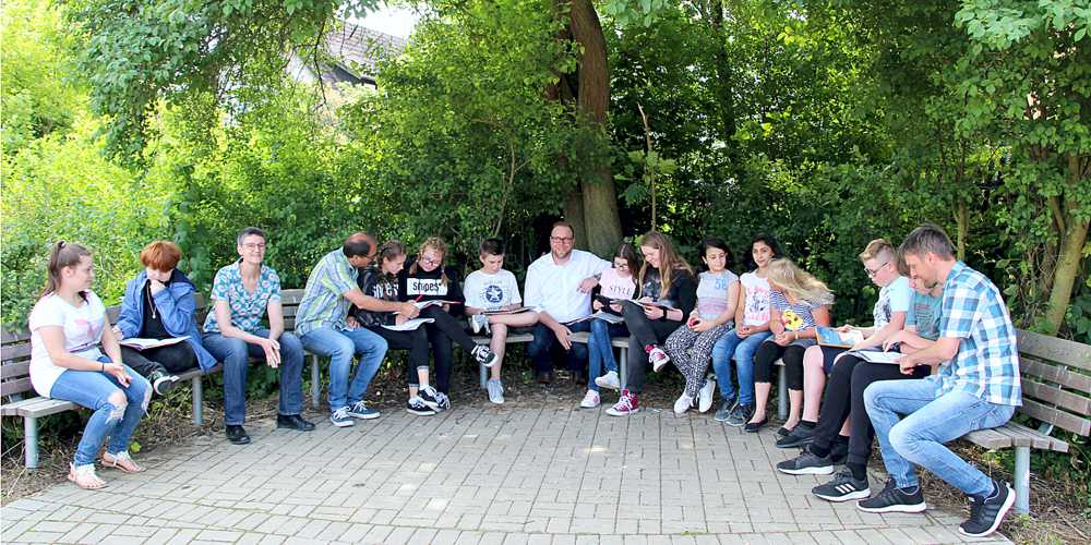 Im vergangenen Jahr wurden schon vier Sitzbänke in Hufeisenform unter einem großen Baum aufgestellt. Diese Sitzecke wird von den Kindern sehr gut angenommen und auch als Grünes Klassenzimmer, um französisch Vokabeln zu lernen.
