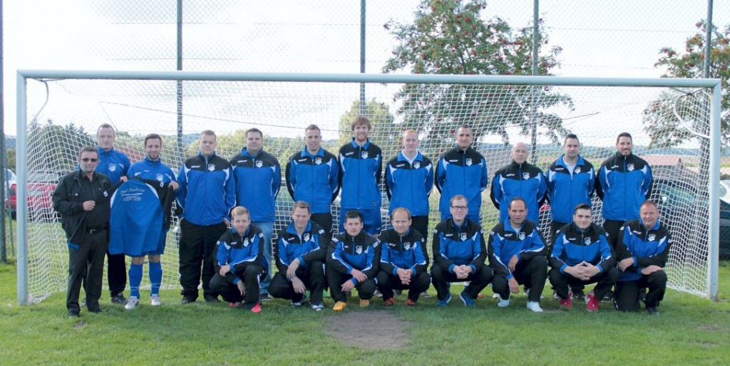 Die Almkicker freuen sich über neue Trainingsanzüge, die sie vom Chef des Restaurants aus Vienenburg gesponsert bekamen. Deshalb traf man sich vor dem letztem Heimspiel zum Fotoshooting mit Sponsor Andreas Christodoulou. Auch der Junior des Restaurants, Christos, gehört zum Almkicker-Team. Passend zum Anlass lachte die Sonne über der Alm.