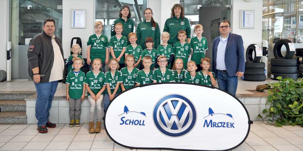 Nachdem die alten Trikots doch so langsam in die Jahre gekommen waren, machte sich das Trainerteam Kathrin Müller, Sabine Hennig und Milane Müller auf die Suche nach Unterstützung bei der Anschaffung. Mit den beiden Geschäftsführern Axel und Lutz Mrozek vom VW Nordharz (Autohaus Scholl in Bad Harzburg und Autohaus Mrozek in Schladen) fand man die passenden Unterstützer, die, gerade was die Förderung der Jugendarbeit in der Region betrifft, immer ein offenes Ohr hatten und haben.