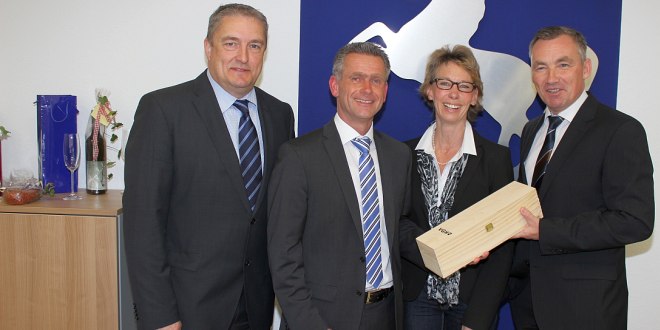 (v.l.): Roland Stahl (Vertriebsleiter), Christian und Monika Gliemann und Ulf Hesse (Regionaldirektor).