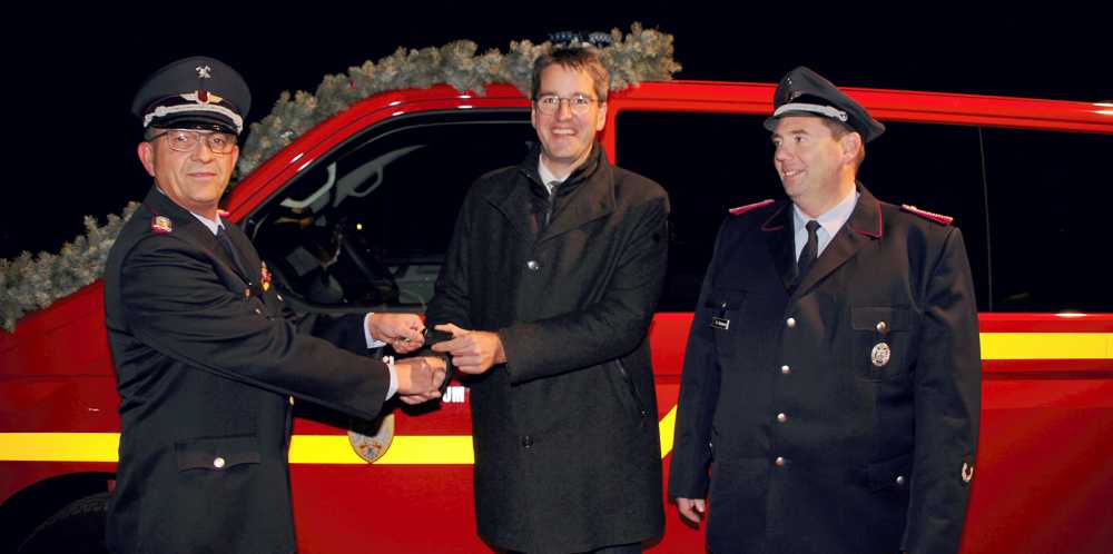 Oberbürgermeister Dr. Oliver Junk überreichte den Schlüssel an Stadtbrandmeister Christian Hellmeier, dieser gab ihn dann an den Ortsbrandmeister Heiko Hartmann weiter. Er behielt den Schlüssel auch nicht, denn der Gerätewart Patrick Blüher ist für das Fahrzeug verantwortlich. „Ich bin nun neun Monate in Lochtum und erlebe immer nur neue Dinge“, so Pfarrer Martin Widiger, er segnete alle aktiven Feuerwehrleute.