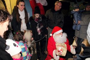 Aufregend warteten die Jüngsten mit ihren Eltern und Familienangehörigen auf dem Sportplatz in Lochtum. Begleitet wurde er von zwei Ponys, den 25- jährigen Avanni und Dago. In diesem Jahr kam der Nikolaus aus dem Erzgebirge und er hatte vier große Säcke mit süßen Gaben mitgebracht. Einige Kinder sagten erst ein Gedicht auf, bevor sie eine bunte Tüte mit Süßigkeiten bekamen. Insgesamt 52 Tüten hatte der Veranstalter, der TSV Lochtum gepackt.