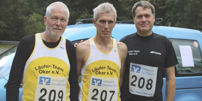 Das Feld im 10 km Lauf beherrschte Marc Fischer vom ausrichtenden Läufer-Team Oker klar, es war sein erster Sieg für seinen neuen Verein. Allein das Läufer-Team stellte eine Mannschaft, die Senioren M50/55 mit Dietmar Meyer, Heinz Mahlmann und Günther Henkel (siehe Bild) holten sich den Titel.