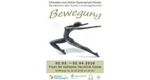 Schülerinnen und Schüler des CvD-Gymnasiums zeigen eigene Skulpturen zum Thema Bewegung Das Christian-von-Dohm-Gymnasium (CvD) Goslar präsentiert vom Donnerstag an, den 1. März 2018, in der Asklepios Harzklinik Goslar Werke zum Thema Bewegung von Schülerinnen und Schülern des Kunstleistungskurses des aktuellen Abiturjahrgangs. …
