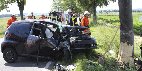 Gegen einen Baum geprallt: Frau schwer verletzt – Totalschaden am Fahrzeug