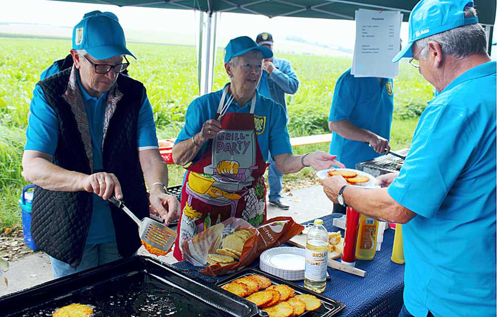 Der Männergesangverein (MGV) Einigkeit Lochtum hatte zum Pufferessen eingeladen. Hannelore Caspar, Christel Bock und Helga Pape bereiteten in der Pfanne wieder die knusprigen Kartoffelpuffer zu, als Beilage gab es Apfelmus und Zaziki. Wer lieber etwas anderes Essen wollte, konnte bei Jürgen Koch Gegrilltes essen.