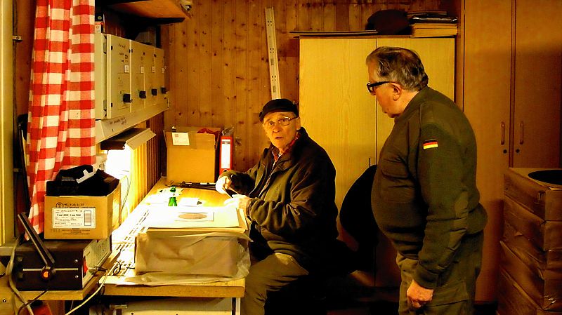 Stabsunteroffizier d.R Peter Lindner und Feldwebel d.R. Hans Lenk bei der Auswertung des Schießens