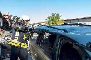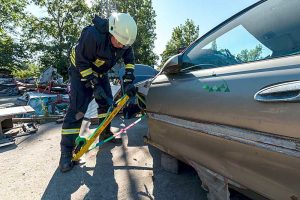 Um sich über die neusten Rettungstechnologien und die neusten Rettungsgeräte zu informieren wurde die Präsentation von Weber Rescue organisiert, die auf dem Schrottplatz in Abbenrode stattfand. Nach einer kurzen Vorstellung und Einweisung an den hydraulischen Rettungsgeräten, konnten die anwesenden Einsatzkräfte die Rettungsgeräte an bereitgestellten PKWs selbst praktisch testen und sich ein Bild über deren Einsatzmöglichkeiten machen. So wurden die PKWs bis auf die Karosserie zerschnitten, zerspreizt und zersägt, und die Rettungsgeräte auf Herz und Nieren geprüft.