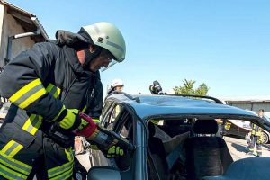 Gemeindewehrleiter Enrico Mäntz lud zu einer Präsentation neuster hydraulischer Rettungsgeräte und Geräte zur technischen Hilfeleistung von Weber Rescue ein.