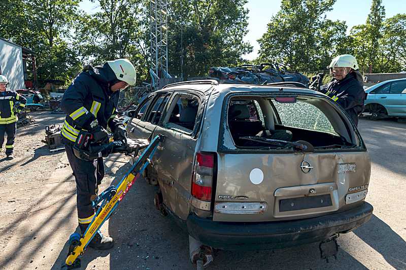 Um sich über die neusten Rettungstechnologien und die neusten Rettungsgeräte zu informieren wurde die Präsentation von Weber Rescue organisiert, die auf dem Schrottplatz in Abbenrode stattfand. Nach einer kurzen Vorstellung und Einweisung an den hydraulischen Rettungsgeräten, konnten die anwesenden Einsatzkräfte die Rettungsgeräte an bereitgestellten PKWs selbst praktisch testen und sich ein Bild über deren Einsatzmöglichkeiten machen. So wurden die PKWs bis auf die Karosserie zerschnitten, zerspreizt und zersägt, und die Rettungsgeräte auf Herz und Nieren geprüft.