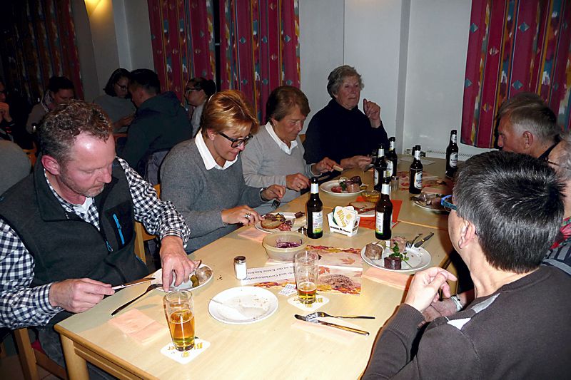 Natürlich gab es auch warme und kalte Steeke. Der große Renner war wie bei jedem Schlachteessen das von Maria Marx zubereitete Nierenmett: Mett mit Zwiebeln in der Pfanne gebraten. Im mit über 80 Personen voll besetzten Bischof-Rese-Haus waren auch wieder viele Gäste aus Vienenburg, Wiedelah, Goslar und Seesen zu Gast.