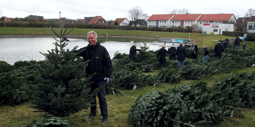 Insgesamt 380 Weihnachtsbäume in allen Größen, alles Nordmanntannen, warteten an zwei Tagen auf dem Freibadgelände auf ihre neuen Besitzer.
