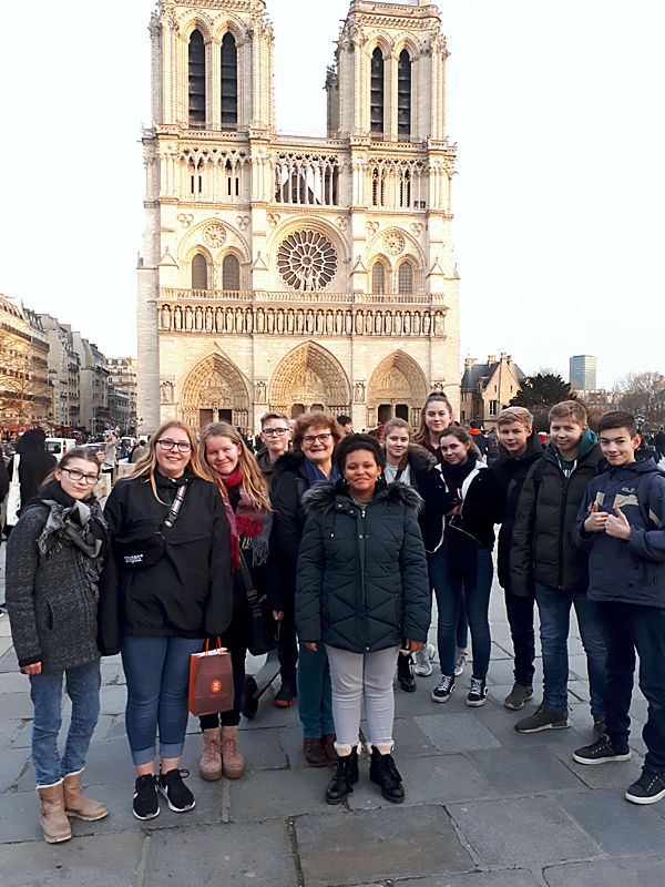 Die Schüler genossen eine ereignisreiche Woche, in der sie sich von der Fülle weltberühmter Sehenswürdigkeiten beeindrucken ließen. Auf dem Programm standen unter anderem eine spannende Stadtführung, die Besichtigung des Eiffelturmes und die Aussichtsplattform Trocadéro mit wunderbarem Blick auf die Eiserne Dame, dem Eiffelturm. Weiter ging es zur Sacré-Coeur, der weißen Kirche mit den breiten Treppenstufen sowie zum Place de Tertre, der das Künstlerviertel darstellt.