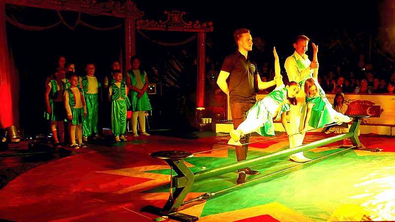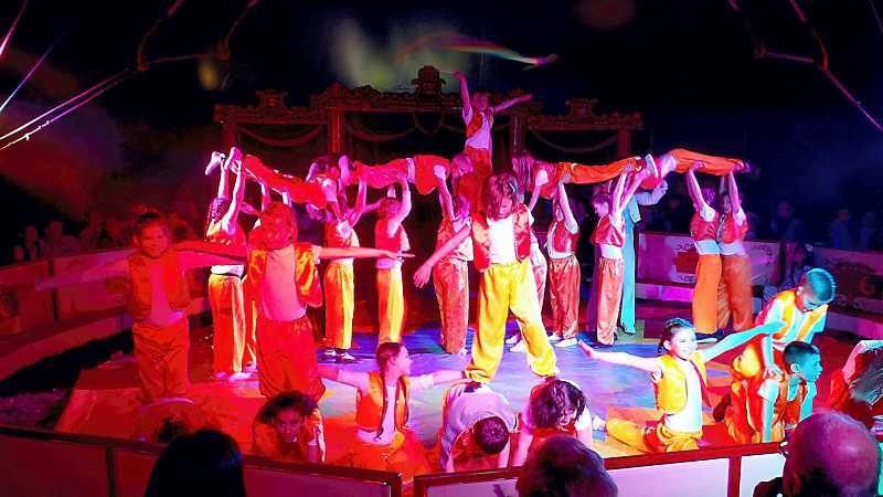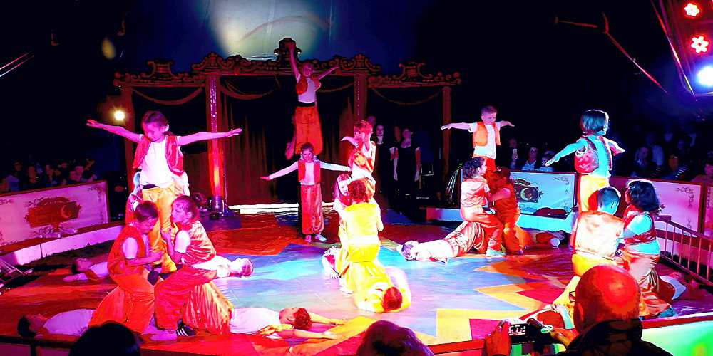 Die jungen Artisten führten am Trapez atemberaubende Kunststücke vor. Mit großer Spannung wurde der Zaubertrick „Zersägen einer Jungfrau“ beobachtet. Zuvor konnten sich Zirkusbesucher von der Echtheit der Stichsäge überzeugen. Die kleinen Artisten bauten menschliche Pyramiden und das Brandenburger Tor auf und zeigten Kunststücke auf dem Drahtseil. Die Showeinlagen der Clowns waren sehr witzig und brachten das Publikum oft zum Lachen. Die Jongleure führten teils schwierige Übungen vor. Die Fakire tanzten Barfuß auf Glasscherben u.a. Natürlich hatten die Kinder auch Fakire vorführen in ihrem Repertoire.