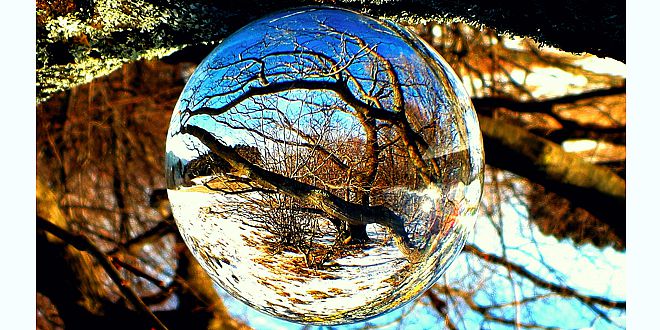 Bei ein wenig Fantasie sieht man in der Glaskugel einen Dinosaurier. Das Bild habe ich auf dem östlichen Langenberg aufgenommen. Foto und Text: Helmut Gleuel
