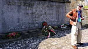 Auf dem Museumsvorplatz und Soldatenfriedhof sowie am Ehrenmal schilderte der 1968 in Ostberlin geborene Tobias Voigt eindrucksvoll die grausamen Ereignisse der erbitterten und verlustreichen Kämpfe um die Seelower Höhen.