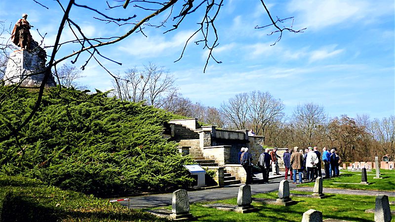 Auf dem Museumsvorplatz und Soldatenfriedhof sowie am Ehrenmal schilderte der 1968 in Ostberlin geborene Tobias Voigt eindrucksvoll die grausamen Ereignisse der erbitterten und verlustreichen Kämpfe um die Seelower Höhen.