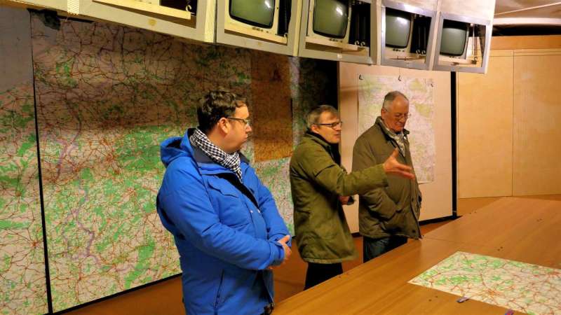 Die Seminarteilnehmer informierten sich in zwei Gruppen zunächst über die im Erdgeschoss des in Tarnfarbe angestrichenen Stabsgebäudes ausgestellten Exponate, und gingen anschließend über Treppen durch das Labyrinth der dreigeschossigen Bunkeranlage. Hierbei wurden sie von zwei sachkundigen ehemaligen NVA-Offizieren begleitet. Die Bausubstanz hat, in den inzwischen stillgelegten fast 30 Jahren sehr gelitten. Die einzelnen Bereiche können mit tonnenschweren druck- und gasdichten Stahltüren geschlossen werden. Die Soldaten der Reserve zeigten sich von den vielen Gängen, Schleusen und Funktionsräumen, die teilweise mit modernster Technik aus der damaligen Zeit ausgestattet sind, sehr beeindruckt.