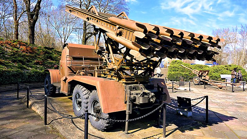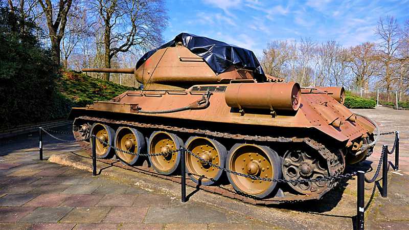 Auf dem 1972 vor dem Museum angelegten Platz stehen auf Betonplatten in den inzwischen verblassten Farben Schwarz, Rot und Gold vier Artilleriegeschütze und ein Panzer vom Typ T-34/85 der Sowjetarmee, die in Richtung Westen zeigen. Die 76 mm-Kanone und 152 mm-Haubitze sowie der 120 mm-Granatwerfer und Geschosswerfer BM 13-16 (Stalinorgel) wurden bei der Schlacht um die Seelower Höhen eingesetzt.