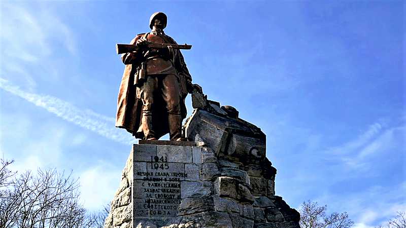Auf dem höchsten Punkt der Gedenkstätte hat nach dem Zweiten Weltkrieg die Sowjetunion ein Ehrenmal angelegt, das am 27.11.1945 eingeweiht worden ist. Auf dem Sockel steht eine große Bronzeskulptur, die von den sowjetischen Bildhauern Lew Kerbel und Wladimir Zigal geschaffen wurde. Sie zeigt einen Soldat der Roten Armee mit einer Maschinenpistole, die sich auf dem Turm eines zerstörten deutschen Panzers stützt. Darunter steht in russischer Schrift: „Ewiger Ruhm den Helden, gefallen in den Kämpfen mit den faschistischen Eindringlingen für die Freiheit und Unabhängigkeit der Sowjetunion.“