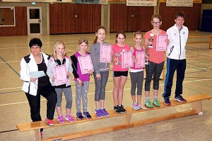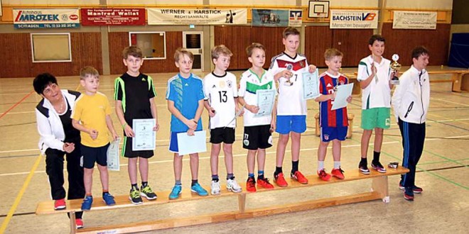 Um 14 Uhr konnten Jugendwartin Monika Prang und Niklas Bock 8 Jungen und 6 Mädchen begrüßen, die sich dem Wettkampf stellen wollten. Beide Trainer wollten die Chance nutzen und den Eltern die Fortschritte der Kinder präsentieren. Mädchen und Jungen spielten in getrennten Gruppen, ohne Altersberücksichtigung, im Modus jeder gegen jeden. Ausgespielt wurden jeweils 10 Gewinnpunkte. Auf drei Tenniscourts liefen die Matches gleichzeitig ab. Besonders bemerkenswert ist es, dass auch 3 Nachwuchsspieler teilnahmen, die erst seit weniger als 1 Jahr am Tennistraining teilnahmen. Die Zuschauer konnten sehr interessante Partien bestaunen und manche Ballwechsel waren spektakulär. Die Spiele wurden geleitet von Monika Prang , Niklas und Anke Bock. Eingreifen musste man nicht, denn es lief alles sehr fair ab, so dass jeder Spieler mit erhobenem Kopf vom Platz kam. Nach gut 4 Stunden interessantem Tennis wurden dann die Ergebnisse errechnet. Sowohl bei den Jungen als auch bei den Mädchen gab es Punktgleichheiten und so mussten dann noch Entscheidungsspiele ausgefochten werden. Bei der anschließenden Siegerehrung bekam jeder Teilnehmer einen Preis, eine Urkunde und natürlich einen Riesenapplaus von den Zuschauern. Die erst bis dritt Platzierten erhielten zudem Pokale. Platzierung Mädchen (3. Platz Tomke, 2. Platz Mette, 1. Platz Hannah) Platzierung Jungen (3.Platz Lennard, 2. Platz Collin, 1. Platz Finn-Luc)