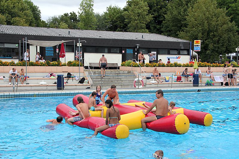 Bei freiem Eintritt konnte bei einer angenehmen Wassertemperatur von über 23 Grad Celsius gut geschwommen werden. Weiterhin konnten sich die Kinder an verschiedenen Spielangeboten austoben.