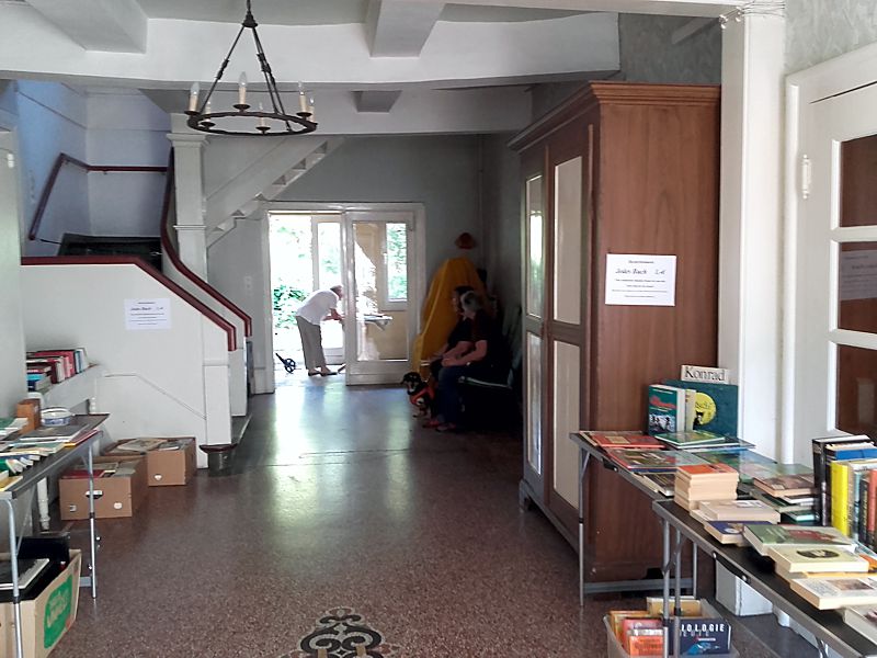 In der Diele hatten die Besucher die Möglichkeit beim Bücherflohmarkt des Leo von Klenze Vereins schöne Fotobände und andere Bücher zum guten Zweck zu erstehen. In diesem Jahr beteiligte sich auch der Sozialverband Deutschland am Fest. Der SoVD feiert in diesem Jahr 100 Jahre Frauen im SoVD und zeigte zu diesem großen Thema einen Film. Die starken Frauen setzten schon 2 Jahre nach der Gründung des SoVD das Recht auf Mitgliedschaft mit gleichen Rechten wie die Männer durch. Auch heutzutage setzen sich weiter die Frauen des Vereins für die Gleichberechtigung in der Gesellschaft, wie auch gleicher Lohn für gleiche Arbeit, ein.