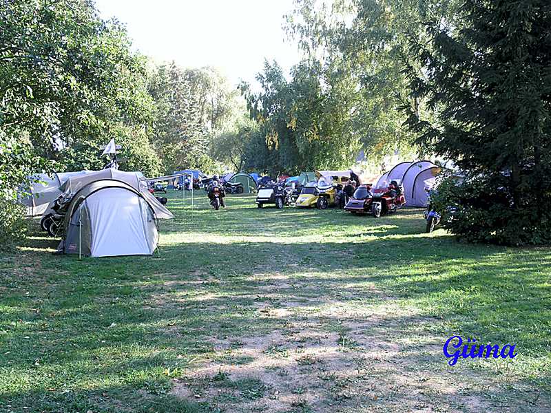 Am Donnerstag waren bereits sehr viele Gäste angereist, Zelte standen auf dem Gelände und im großen Zelt traf man sich zu gemütlichem Beisammensein, denn es gab viel zu erzählen. Ständig kamen neue Gäste – mit Gespann oder Solo – alles war herzlich willkommen. Ein Durchzählen ergab am späten Samstag Nachmittag bereits 65 Zelte, ca. 100 Motorräder – Gespanne und Solomaschinen. Einige Besucher zelteten nicht, sondern hatten sich ein Quartier in Gästezimmern in der alten Stadt Hornburg genommen.