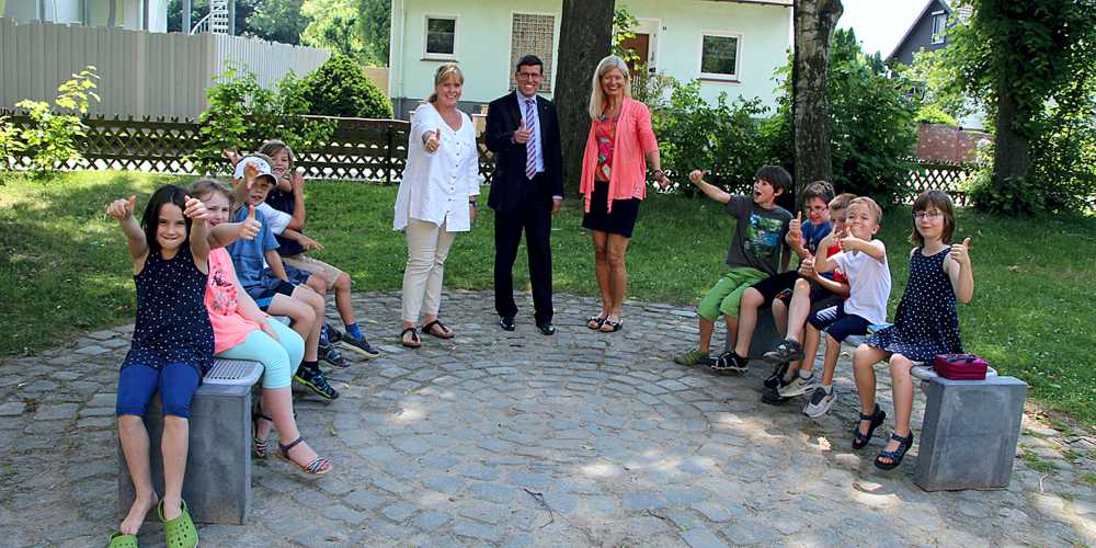 Insgesamt vier Sitzbänke konnten auf dem Außengelände der Grundschule Hahndorf eingeweiht werden.